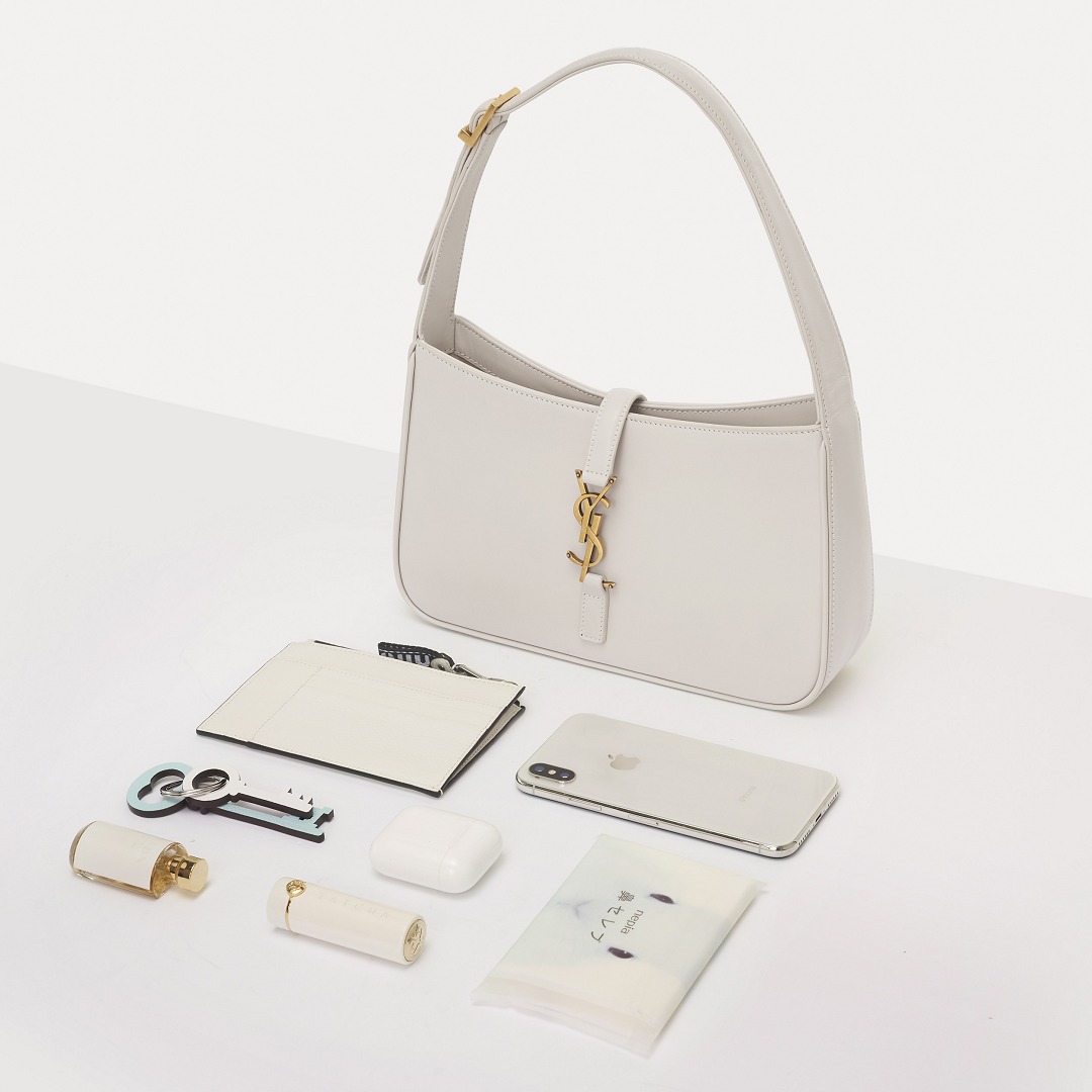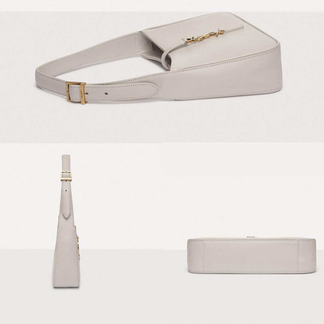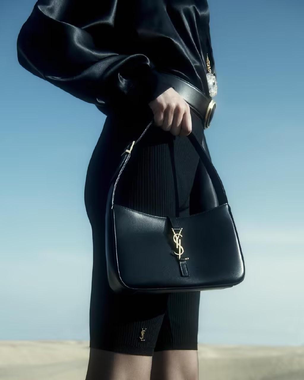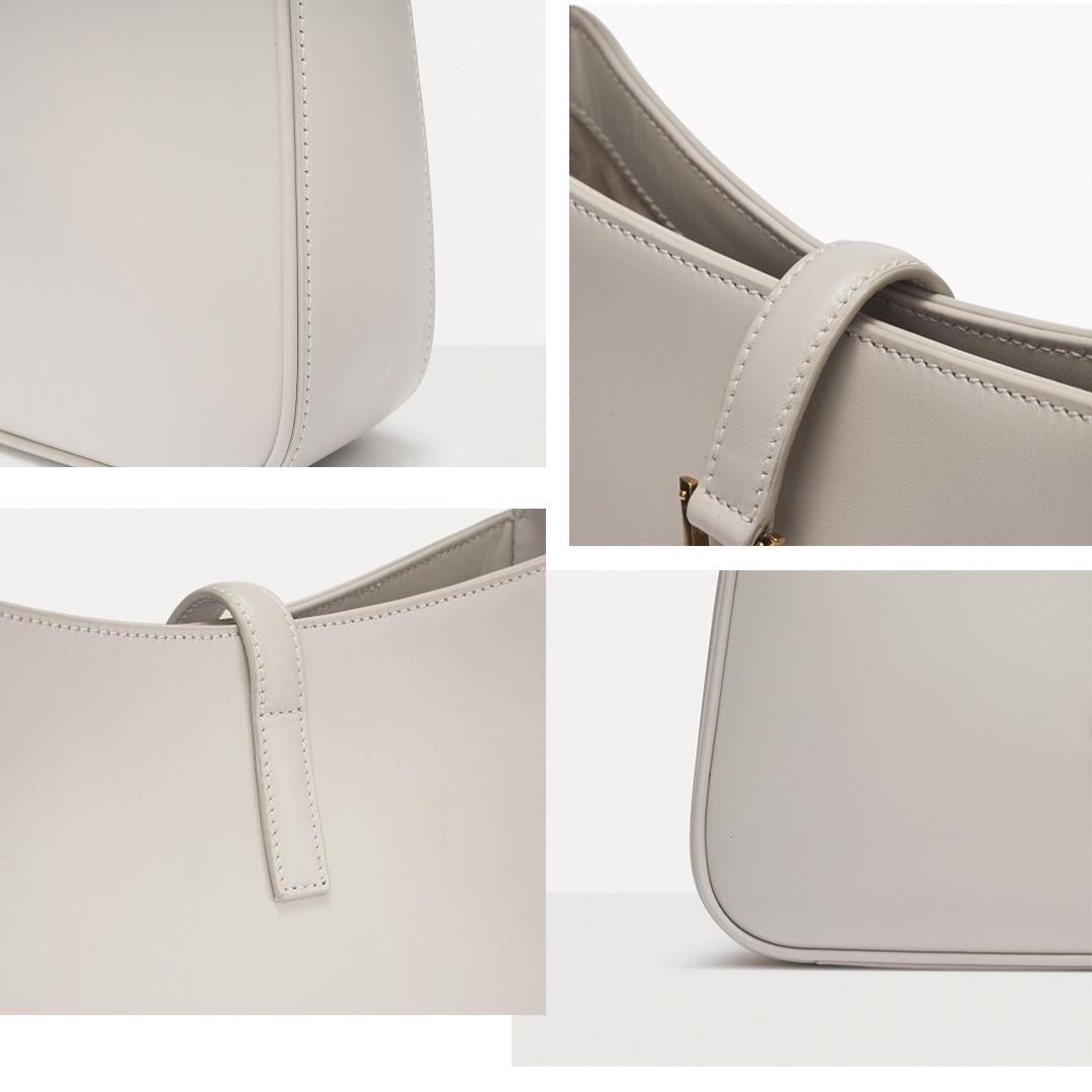 It adopts a minimalist Hobo bag shape with the brand's iconic YSL logo buckle,